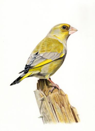 A unique coloured pencil drawing of this Greenfinch, this is the original and with over 20 hours work, you can easily appreciate the work that has gone into this drawing.